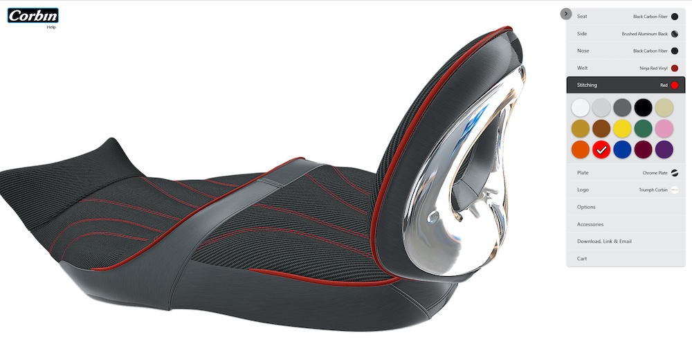 “Our newest configurator takes things to a whole new level of motorcycle seat customization,” stated Mike Corbin. “We are very excited to introduce the world’s first 3D seat configurator developed through our continued partnership with Digital Draping.”