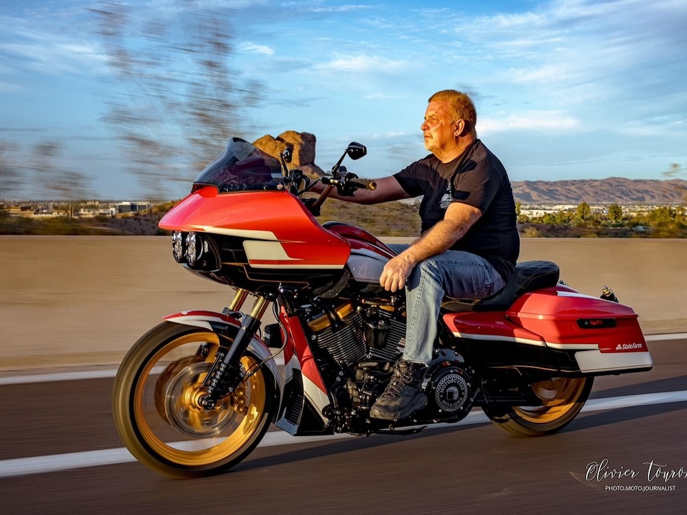 (Motorcycle) mission accomplished: The 2024 Performance-Bagger build is done and dusted! Thanks to our veterans and the amazing sponsors of this project for helping us create such an excellent State Farm inspired custom Harley-Davidson.